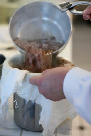 もうひとつのテーマ「ポン酢」のお話。基本的なポン酢のお話と楽山のポン酢のレシピを応用したご家庭でも簡単に出来る「レモン風味のポン酢」を披露。楽山では生橙の絞り汁を使っていますがご家庭ではなかなか手に入らない食材。レモン汁を使ったさわやかで美味しいポン酢。これさえあれば応用は何でも出来ます。今流行りのポン酢ジュレも作っちゃいました。ここでも昆布と鰹は大活躍。和食には切っても切れない食材なんですね。