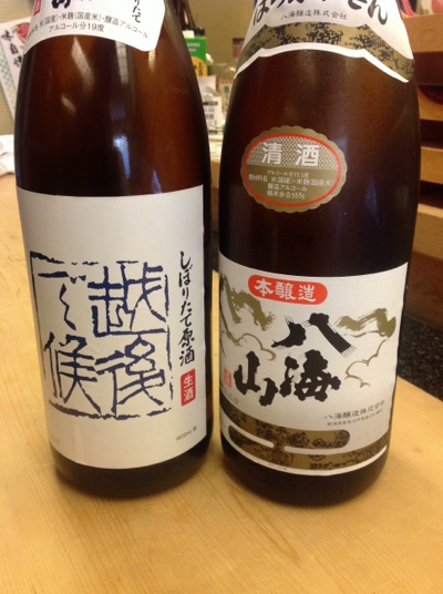 そして楽山でも八海山を常備することにしました。右が本醸造。左は搾りたての原酒です。