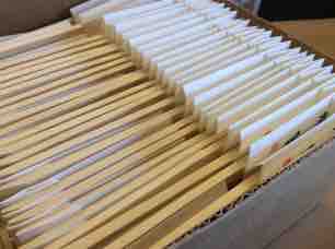 出前用の箸。割り箸を袋に入れる作業です。取り出すのがもったいないぐらいびっしり綺麗に並べてありました。