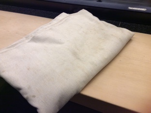 檜のカウンターを保護してある布。これまた綺麗にきっちりたたんでありました。