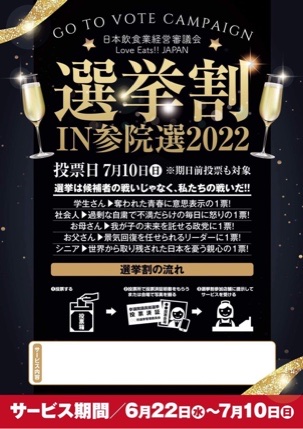 楽山では「選挙割」のサービスを実施いたします。