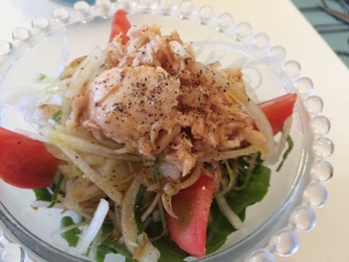 サラダを食べ、器にポン酢と菜種油が残っていたら、ぜひ飲み干してください(笑)