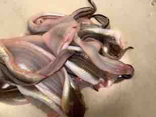 すしネタの穴子を仕込む時、活けの穴子を仕入れます。
