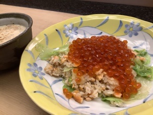 塩鮭とレタスのチャーハンいくらのせ