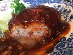 ハンバーグは牛か合挽きと思ってましたが、鶏肉で十分。ってか、歩荷さんのミンチだからできる味だと思います。