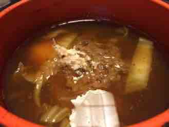 なんか不安だなぁと思って、白菜、餅を入れると初めて美味しく感じる。