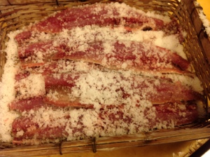 塩してスモークするだけでもいいかな?と思ったんですが酢に通したら臭みも消えてGOOD。ほんのりのスモークの香りもバッチリ。イメージ通りかな。