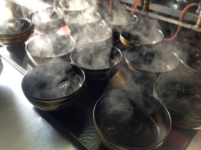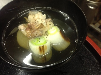 最近コースにお出ししているお椀。冬大根と飛騨一本葱、豚バラのお椀です。