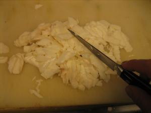 残りを包丁で叩きます。しゃきしゃき感を残したいからです。