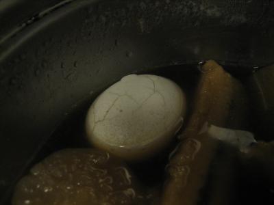鍋の中でひっそりたたずむ玉子。しかーし、ただの玉子ではありません。よーく見てください。
