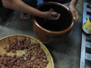 干した梅を梅酢に漬け込みます。