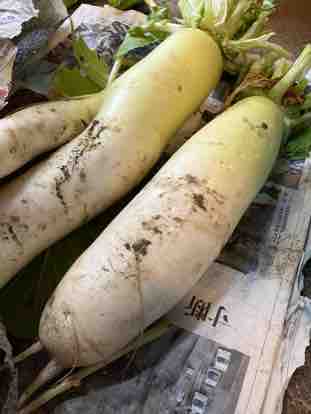 畑の大根。今年は久々に太くなりました。