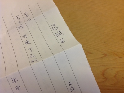 郵送してきた退職届には銀行振込してくれと書いてありましたがそんな訳にはいきませんよね。ケジメをつけるために取りにきてもらいました。