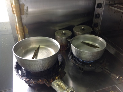 俎箸という鉄の箸を使って生米を器から器に移します。