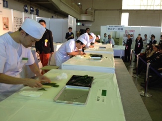 昨日は毎年恒例の外食産業フェアのすし技術コンクール”2013中部”の司会進行をしてきました。