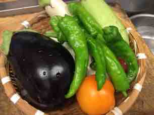 米茄子、白茄子、万願寺とうがらし、このオレンジのトマトが甘いのって。