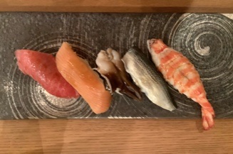 本鮪トロ、鱒、鳥貝、小肌、車海老