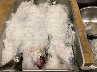 先ずは、魚全体に塩をして締めます。